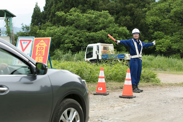 主に工事現場において、歩行者や一般車両の往来が多い通行を確保する業務です。